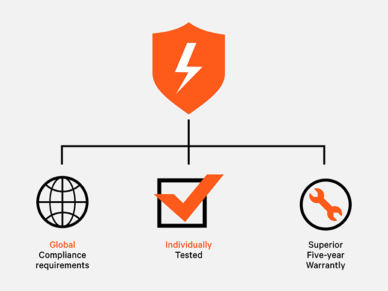 - Drei Jahre Standardgarantie, erweiterbar auf fünf Jahre mit Produktregistrierung.