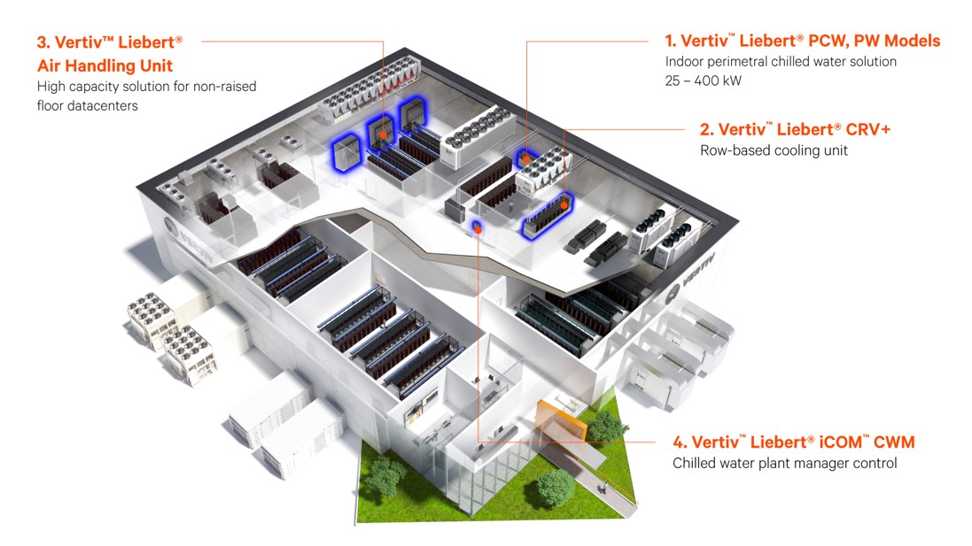 Vertiv has designed its indoor chilled water data center cooling systems to set new efficiency targets and to help cooling continuity for mission-critical workloads.
