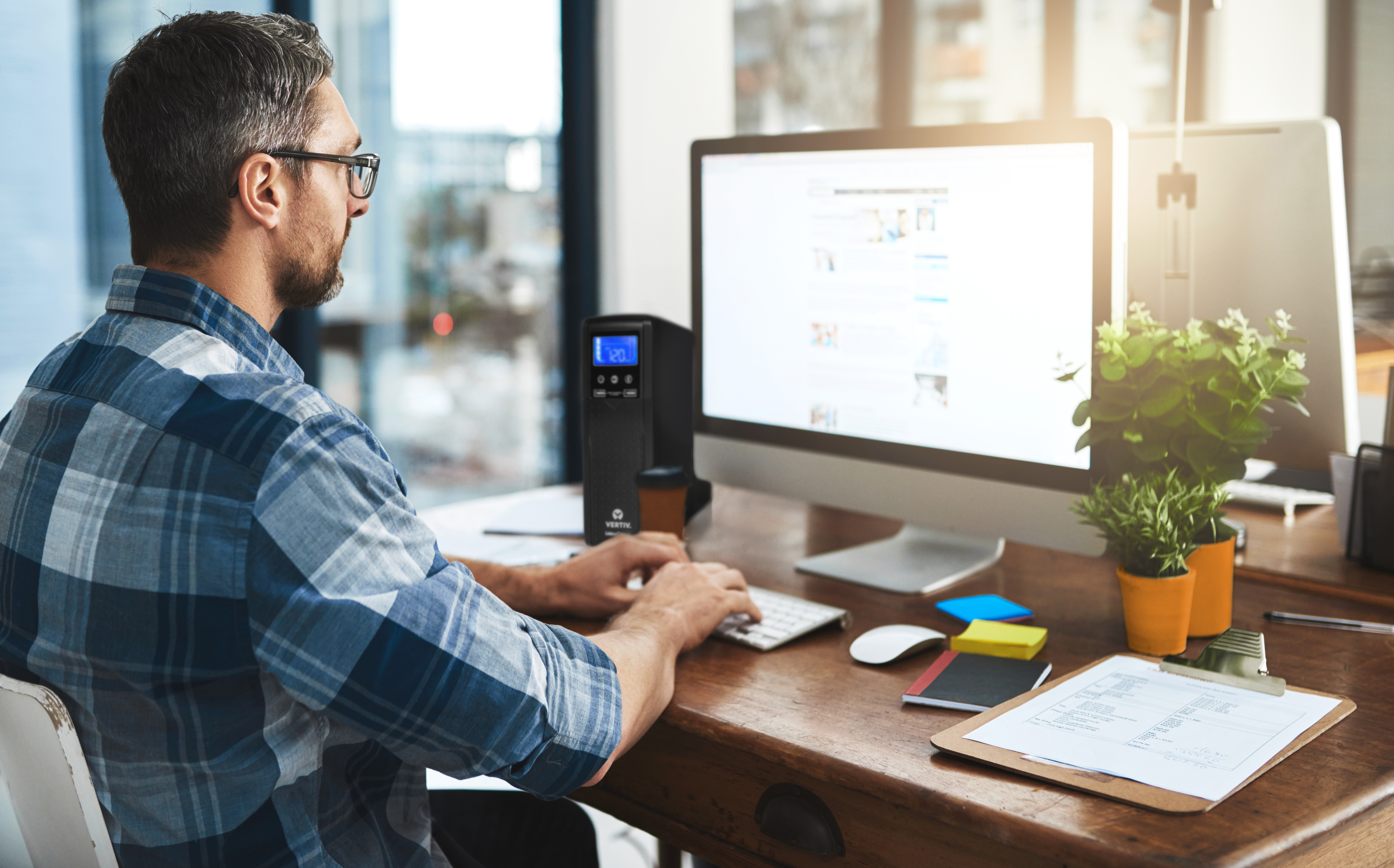 • 500 to 1500 VA • Automatic voltage regulation (AVR) • 10 outlets: 5 battery backup and surge protected outlets; 5 surge-only outlets • LCD display for checking UPS status at a glance • Free Vertiv Power Assist monitoring and management software • 3-year standard warranty and $300,000 Equipment Protection Plan (EPP)