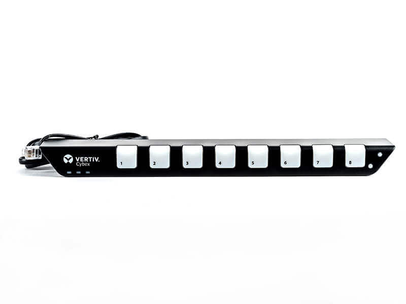 The Cybex™ Active Front Panel (AFP) is a simple, dedicated device designed for remote control and to enhance desktop situational awareness when using Vertiv KVM switches