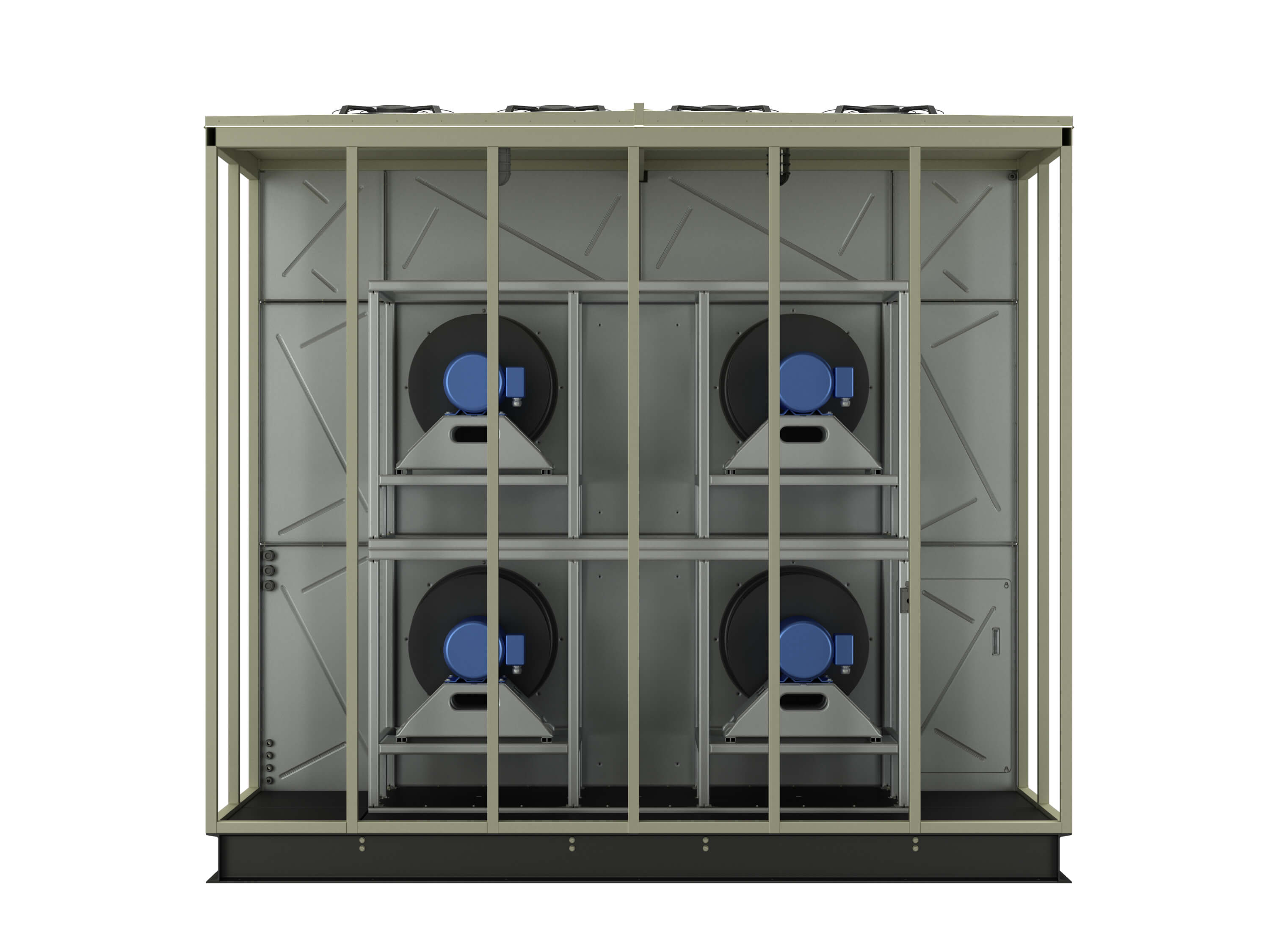 High capacity 400kW – 500kW Highly efficient pumped refrigerant economizer Advanced monitoring and control Large condenser surface area to minimize operating and peak power No dampers to service or outside air filters to replace All components can be serviced from the end of the unit Thermal break construction keeps air from leaking 3 airflow configurations Perimeter or rooftop