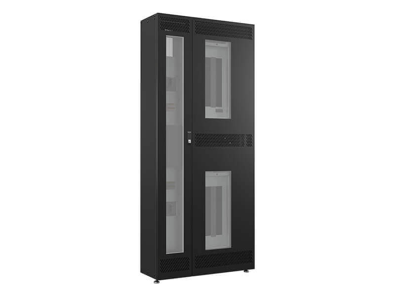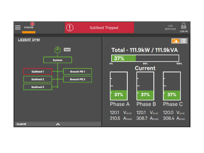 The Liebert TFX is a floor-mounted power distribution unit offering reliable single or two-stage power in small to mid-sized data centers, server rooms, network closets, and modular and containerized deployments. It is ideally suited for edge data centers and other remote facilities. The compact 36-inch-depth cabinet offers easy mobility. It fits through doors or in freight elevators, and can be installed next to walls or in corners or alcoves. The unit features an intelligent distribution power monitoring (DPM) system with a 9-inch color touchscreen display and an easy-to-program navigation menu to manage equipment loads. The power monitoring system integrates with your BMS to provide remote monitoring of critical power measurements and alarms. Isolated panelboards allow your engineers to safely perform onsite maintenance on low-voltage monitoring components without powering down the unit. The made-to-order PDU is customized according to your power needs, and shipped to you with panelboards and subfeeds configured to your specifications. The Liebert TFX accommodates both single and dual-stage distribution setups, and can be supplemented with Liebert® FLX expansion cabinets for additional power capacity.