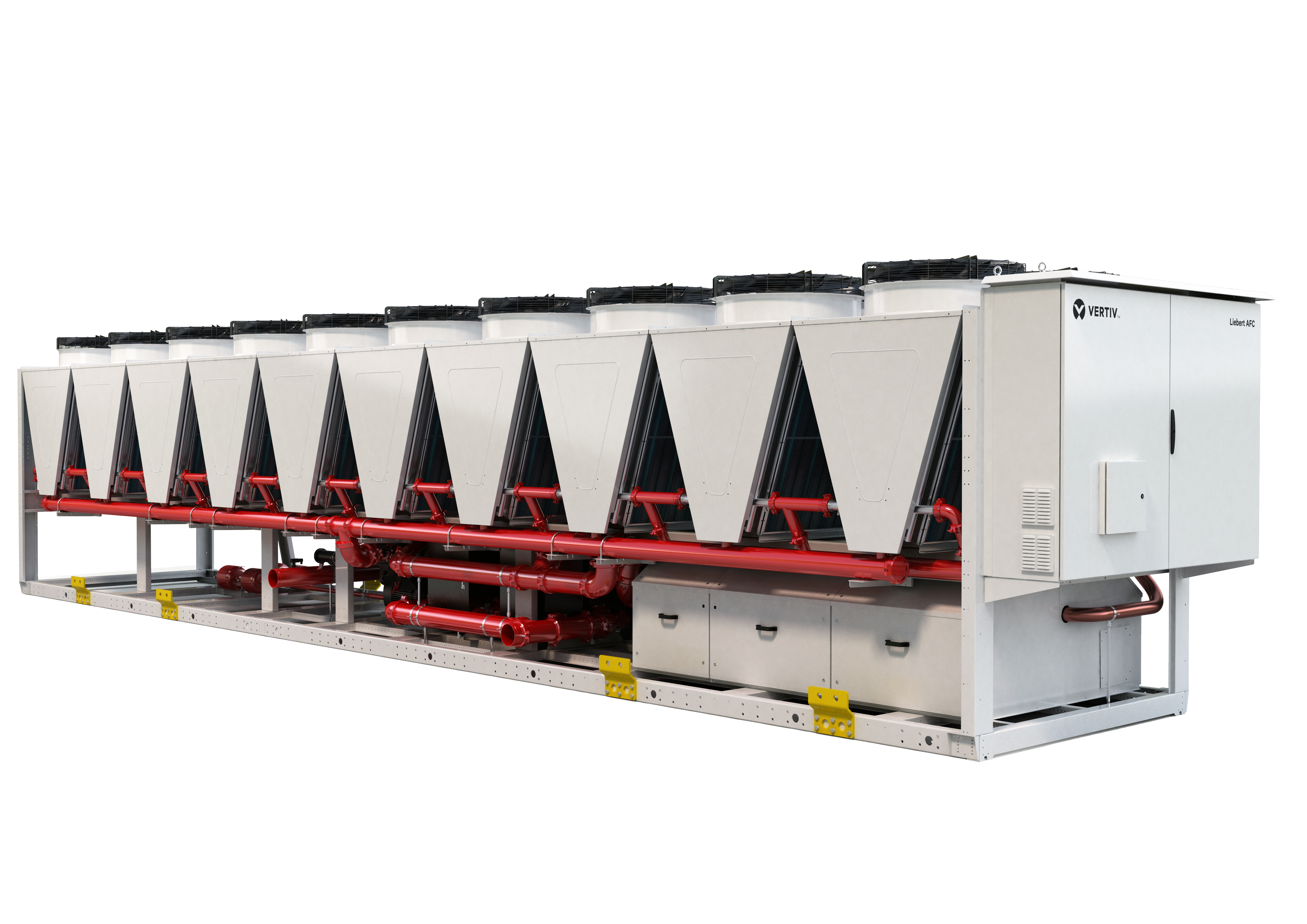 The Vertiv™ Liebert® AFC is a high-end air-cooled free cooling chiller specifically designed for efficient and reliable thermal management of data centers. Utilizing a new low-GWP refrigerant and inverter screw technology, it offers an innovative solution that aims to drastically reduce direct and indirect CO₂ emissions into the atmosphere and limit the carbon footprint of the data center. The free cooling microchannel coil, high-efficiency EC fans, and new low-GWP refrigerant add to the increased efficiency this solution delivers. Additionally, with its Fast Restart functionality, the Liebert AFC ensures high cooling availability and reliability with quick and safe restarts after power failure. Advanced Vertiv™ Liebert® iCOM™ control provides remote monitoring and management capabilities to further increase efficiency and peace of mind.