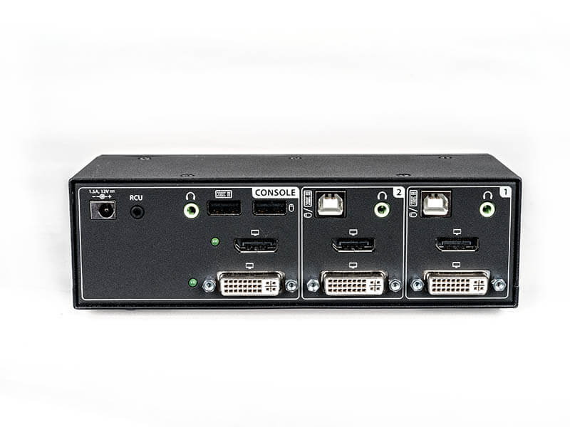 Discrete processing paths. Isolated ports on the switch provide discrete processing paths to each system, preventing data leakage, transfer or crosstalk between adjacent ports.