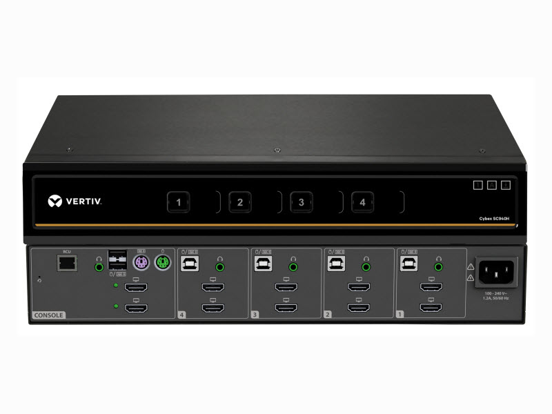 The Cybex™ SC940H secure desktop KVM is designed to meet the stringent specifications of the U.S. government and certified to the NIAP / Common Criteria Protection Profile for Peripheral Sharing Switch version 3.0.