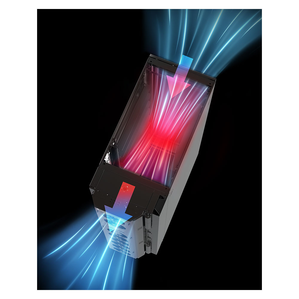 • The compact design minimizes construction costs and resource consumption, freeing up valuable space in the data center. • The fan module's low power consumption allows cost and energy efficient operation. • For lower heat loads, the passive solution with zero electrical power consumption maximises the cooling capacity. • The perfect complement to direct-to-chip liquid cooling, efficiently absorbing any remaining heat dissipation from the air-cooled IT equipment.