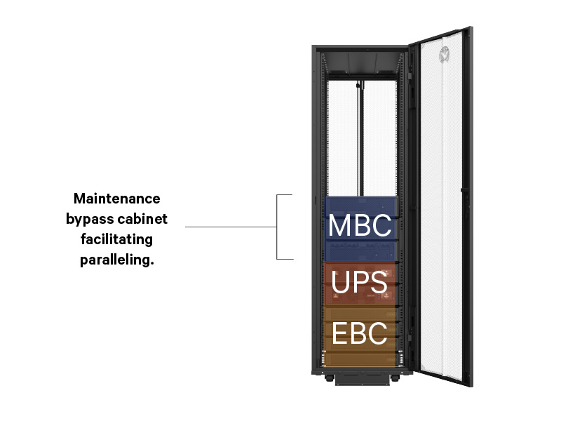 Maintenance bypass cabinets to facilitate paralleling in 30/40kVA 400 UPS units