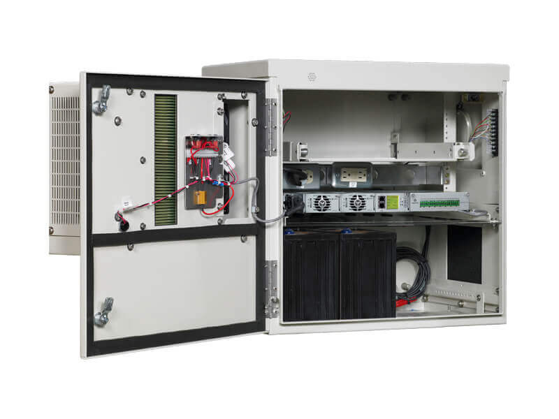 Designed to discretely house DC power equipment, electronics and batteries in a single robust enclosure. The Vertiv XTE 401 Series is a family of three small single-sided low-cost indoor or outdoor rated aluminum enclosures. These enclosures can be equipped with a variety of inexpensive cooling, power, protection and battery options.