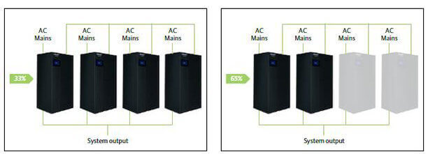 If you want to know more, read the white paper entitled Intelligent Paralleling and Circular Redundancy: Two Technologies for Higher UPS Efficiency.  This document focuses on the above-mentioned technologies to improve UPS operating efficiency when the unit is operating at a reduced system capacity, which is the typical condition found in a data center.