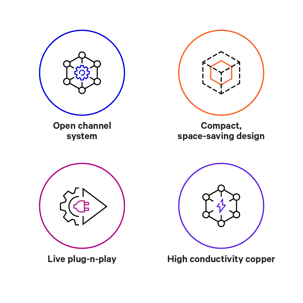 - SIMPLIFIED POWER DISTRIBUTION: It maximizes space and boosts electrical efficiency with an innovative, high-amperage open-track busway.