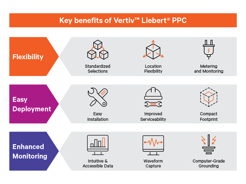 - The Vertiv™ Liebert® PPC offers multiple breaker options that reduce lead times and improve supply chain management.
