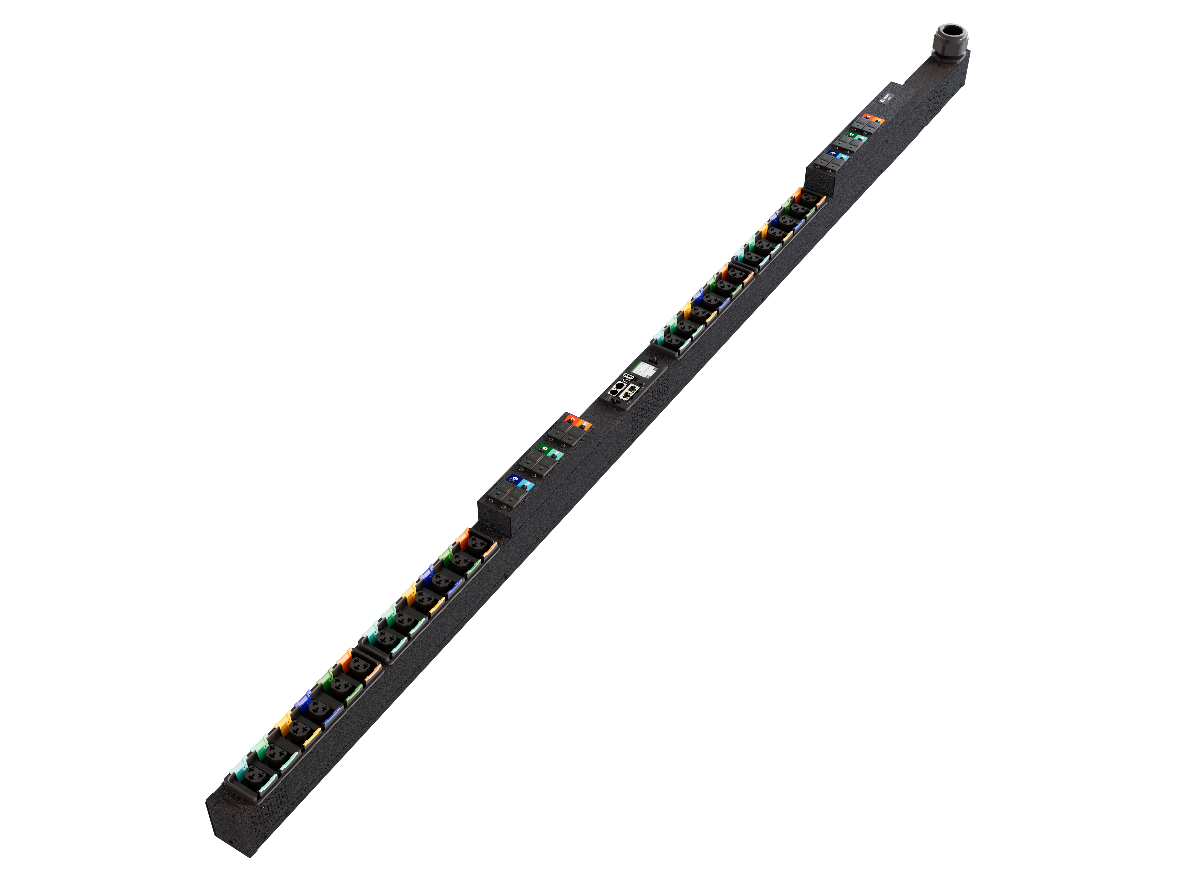 The Vertiv PowerIT Monitored Outlet Level rPDU VP6U60A3 is an upgradeable, 60/63A, 240/415V WYE, 0U, vertical rPDU with input and outlet level monitoring, 24 Combination C13/C19 outlets, and a 3P+N+E (IP44) plug with 43.4kW power capacity. It has a hot-swappable Interchangeable Monitoring Device (IMD-5M), as well as dual gigabit ethernet ports to simplify multiple-PDU management. It also has a three-year warranty extending to five years if registered within 120 days of purchase.