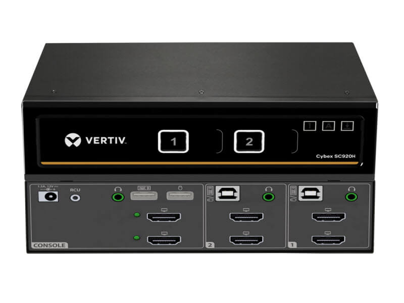 The Cybex™ SC920H secure desktop KVM is designed to meet the stringent specifications of the U.S. government and certified to the NIAP / Common Criteria Protection Profile for Peripheral Sharing Switch version 3.0.