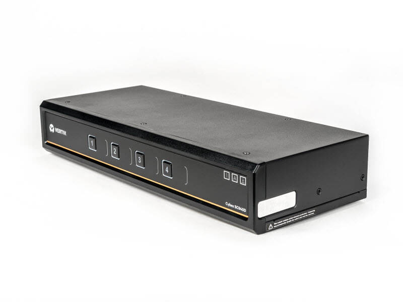 The Cybex™ SC940D secure desktop KVM is designed to meet the stringent specifications of the U.S. government and certified to the NIAP / Common Criteria Protection Profile for Peripheral Sharing Switch version 3.0.