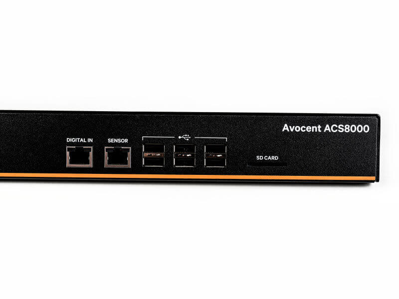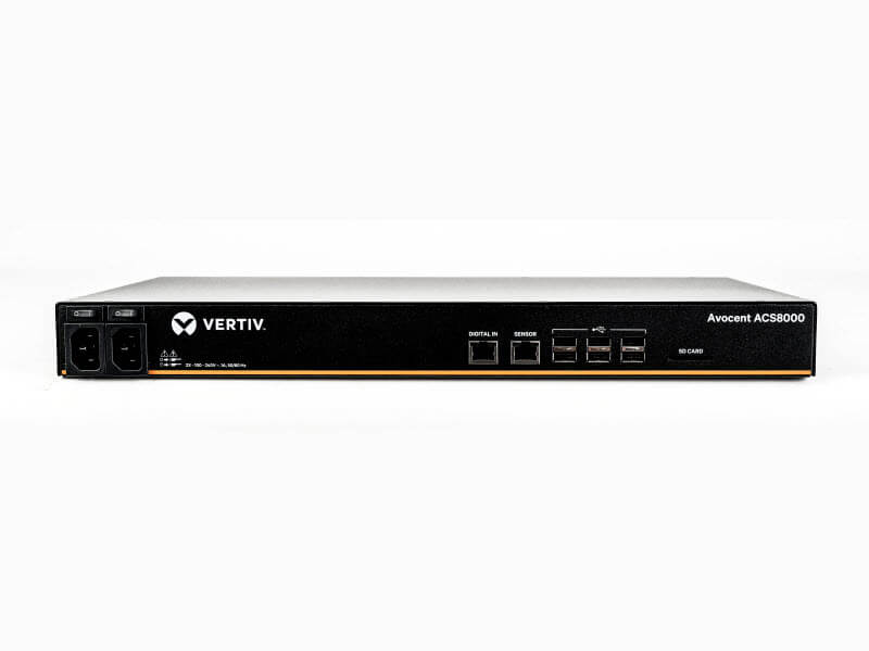 The Vertiv Avocent ACS8000 advanced serial console server series delivers secure in-band and out-of-band visibility and control to downstream equipment in enterprise data centers, as well as cloud and colocation facilities. This serial console system serves as a secure management gateway and single point of entry keeping you connected to critical IT equipment even in the event of partial or total data center outages. With serial access, environmental monitoring, and comprehensive activity logs for all connected devices, the Vertiv Avocent ACS8000 series provides secure equipment access and control across your data center.