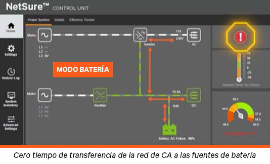 Maximiza la disponibilidad del emplazamiento gracias a un tiempo de transferencia cero de red a batería