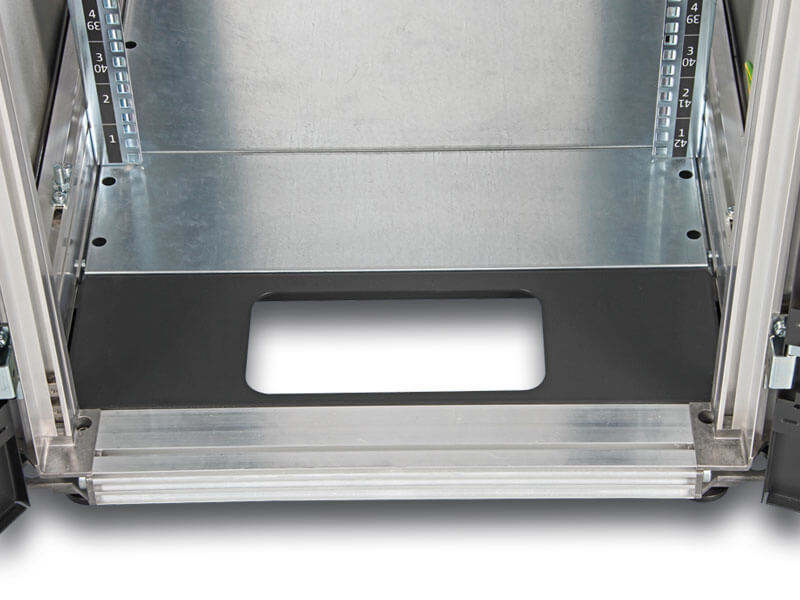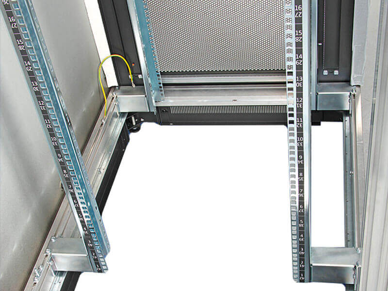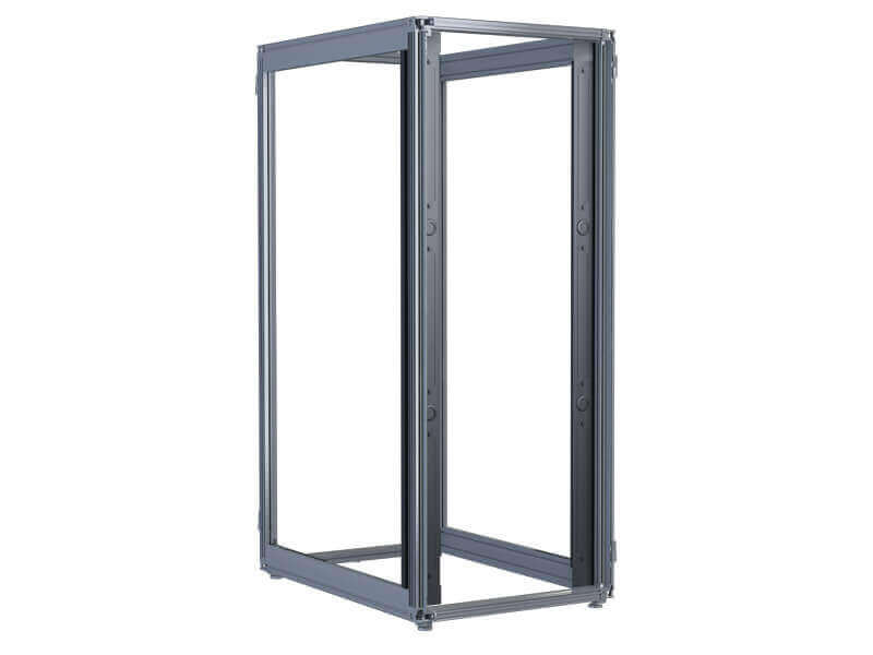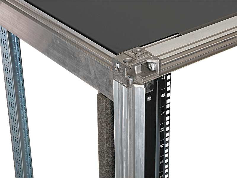El rack de servidores Knürr® DCM es un rack basado en un bastidor de aluminio modular. El rack se ha desarrollado para una capacidad de carga elevada, de hasta 1500 kg. Una de sus principales características es el sistema T-slot dentro de las extrusiones.