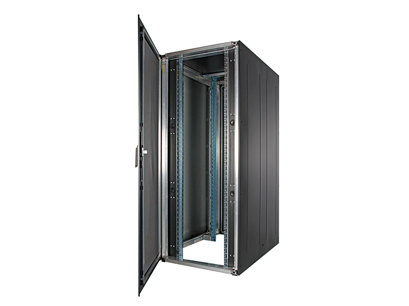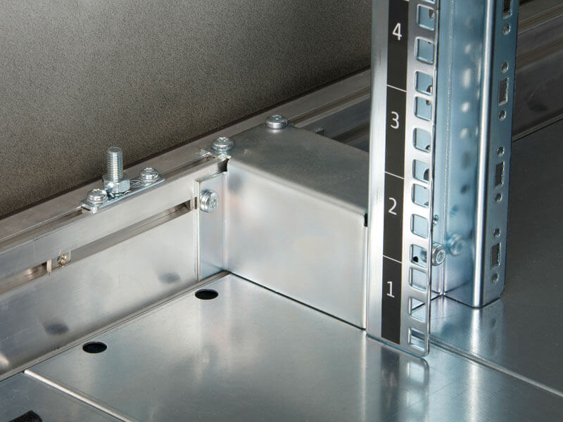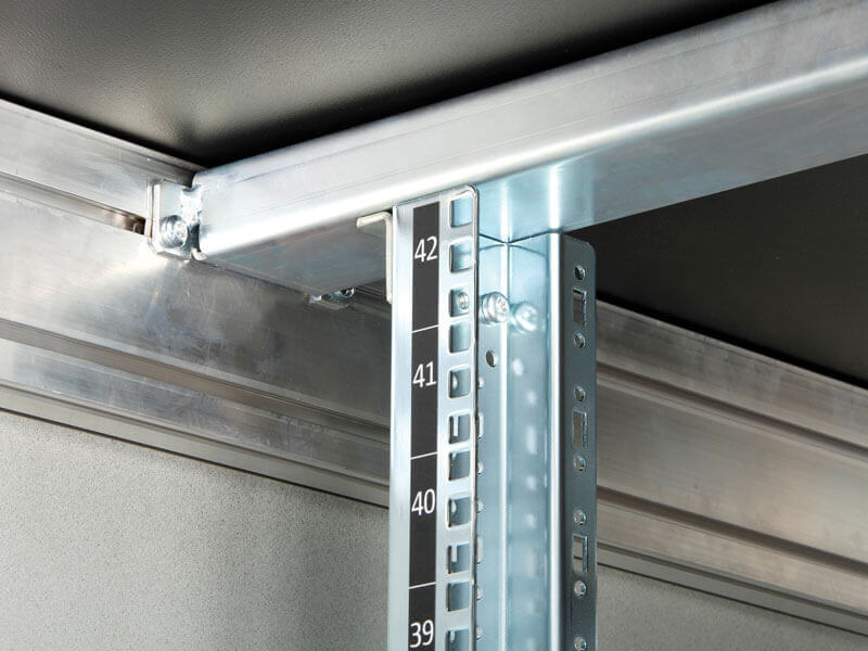 El rack de servidores para grandes cargas Vertiv Knürr® DCM es un rack especial con alta capacidad. Está disponible también en versión móvil con ruedas. Este tipo de rack se caracteriza por una capacidad de carga estática de 1500 kg con un nuevo diseño, perfiles más estables y nuevas uniones de esquina de alta carga.
