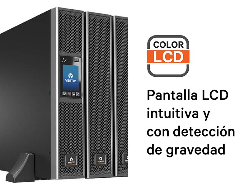 Toda la gama de sistemas de UPS monofásicos Vertiv Liebert GXT5 es fácil de implementar, con un diseño convertible en torre/rack que ofrece flexibilidad en la instalación. Su pantalla LCD a color con detección de gravedad ofrece una interfaz intuitiva para la configuración y gestión locales. El montaje y la integración también son más sencillos con la detección automática de gabinetes externos de baterías para soluciones adicionales de los tiempos de operación. Con la tarjeta de interfaz de red (NIC), la gama de soluciones de gestión de Vertiv, que incluye Trellis™ Power Insight y Vertiv LIFE Services, se encuentra disponible para apoyar su infraestructura crítica. Diseñados para ofrecer una alta disponibilidad y capacidad, estos modelos compactos de UPS con elevados factores de potencia de salida hasta la unidad ofrecen más energía utilizable para los equipos conectados. La operación de alta eficiencia de este UPS con certificación Energy Star 2.0 se traduce en protección mientras apoya la sostenibilidad. También se alcanza una mayor eficiencia por medio del ECO-Mode™ activo.