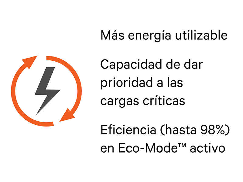 El UPS Vertiv Liebert GXT5 ofrece una amplia variedad de UPS monofásicos. La implementación es sencilla gracias a un diseño en rack/torre convertible que ofrece flexibilidad de instalación y una pantalla LCD a color que detecta la gravedad y ofrece una interfaz amigable para el usuario para la configuración y la gestión a nivel local. El montaje y la configuración también son sencillos con la detección automática de los gabinetes externos de baterías para soluciones adicionales con tiempos de operación. Con la tarjeta de red disponible (NIC), la gama de soluciones de gestión de Vertiv, que incluye el Trellis™ Power Insight y los servicios Vertiv LIFE, cuenta con las herramientas de apoyo de servicio remoto para soportar su infraestructura crítica. Diseñados para una alta disponibilidad y capacidad, estos modelos de UPS con altos factores de potencia de salida hasta la unidad ofrecen más potencia utilizable en una solución compacta, lo cual permite que la energía pueda ser mejor utilizada por el equipo conectado. El funcionamiento de alta eficiencia de este UPS con certificación Energy Star 2.0 se traduce en protección y ahorro de energía. También se alcanza una mayor eficiencia por medio del ECO-Mode™ activo.