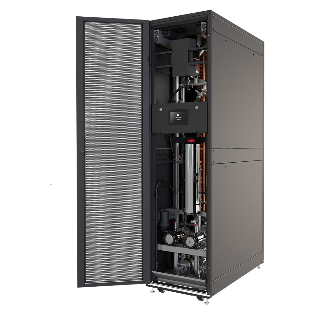 The Vertiv™ CoolChip CDU is designed to support liquid cooling within high density environments. It is suitable for direct-to-chip and rear door cooling applications that offer easy, cost-effective deployment in any data center. The Vertiv CoolChip CDU family has models that operate with and without access to facility water, allowing you to tap into the benefits of liquid-cooled servers to more efficiently support higher rack densities. Select between in-rack, in-row, or perimeter-based designs as well as liquid-to-liquid or liquid-to-air heat exchangers.