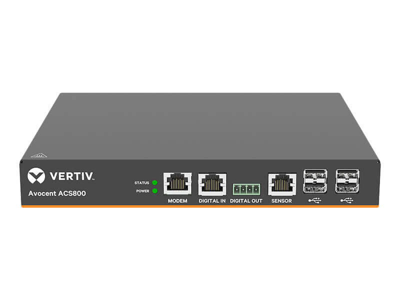 The Avocent ACS 800 serial console system takes Vertiv’s renowned enterprise class technologies utilized in data centers around the world and packages the key features into an exciting compact and cost effective form factor. The ACS 800 provides serial access, environmental monitoring, IoT integration and remote networking capability to edge-oriented market sectors including financial institutions, retail chains and education.
